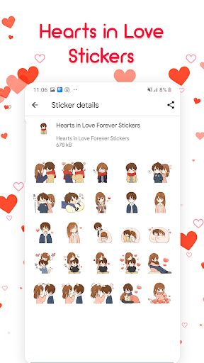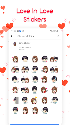 We bring you the best love forever stickers app where you can share romantic stickers packs for whatsapp friends. We offer you assorted romantic big emoji stickers packs so you can choose the one you like most. Send expressive romantic wastickers and emotes in chats by tapping the "emoji" icon in a chat and then tap "sticker" icon at the bottom to get started.