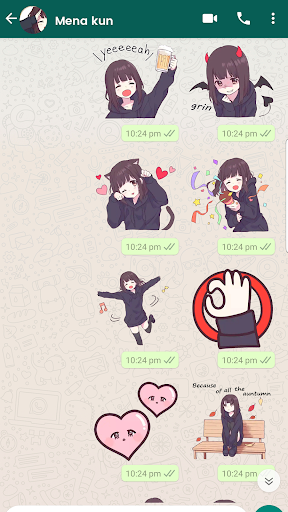 Menhera chan stickers- Anime Stickers for WhatsApp WAStickers packs with a great selection of anime WAstickers and to share in WhatsApp with your loved ones and express your feeling with these amazing stickers. This app contains a large collection of packs of Menhera chan Stickers for WhatsApp. Cute Kawaii Menhera-chan for WhatsApp stickers collection, with many different stickers set. Now express yourself using awesome Menhera-chan Stickers with WAStickerApps. Sticker character whatsapp Menherachan with English translate text, 45 sticker packs, 1000 sticker added with different themes: Good morning theme, Good night theme, Spring theme, Summer theme, Winter theme, New Year theme, Halloween theme sticker and much more.