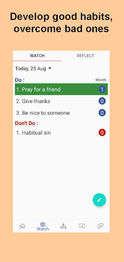 Watch and Pray is a mobile app that will help you become a better person. It is a tool to help you develop good habits and overcome bad ones. It is also a tool to help you pray more effectively, by compiling prayers from yourself and your friends, all in one place.