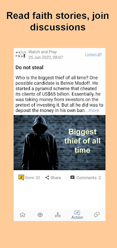 The app has weekly faith stories, with discussions you can join in. It also has a forum page where you can share and read prayers and testimonies from all members. Watch and Pray is a free app with no ads.