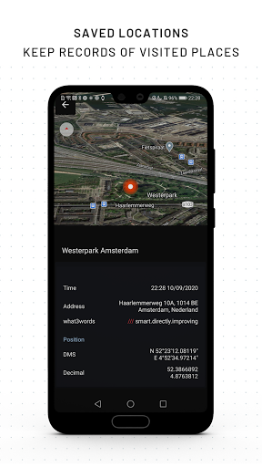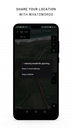 • Location sharing in decimal degrees, Degree-Minute-Second (DMS) notation, and what3words address.