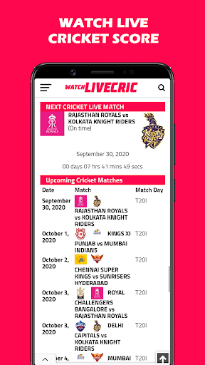 Watch Live Cricket Score & Live Streaming Info App