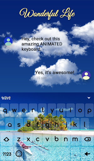 Wonderful Life Animated Keyboard + Live Wallpaper is an awesome personalization app that gives your Android phone a stylish new look. With Wave cool wallpapers and keyboards apps, it is easy to revamp a device in just 3 steps:
