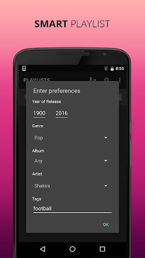 This music app also has a smart playlist feature that lets you search for music by more than one criteria including your tags.