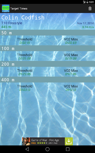 The Swimming Coach's best friend for planning individualised target times for swimmers at threshold and VO2 Max.