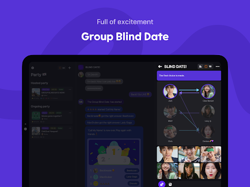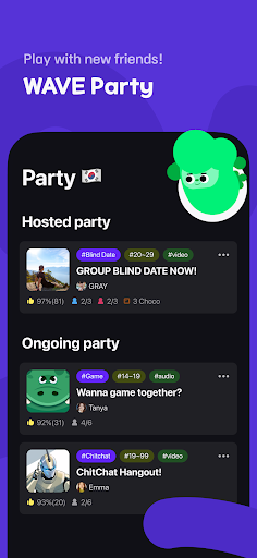- Enjoy Group Blind Dates with 2:2 or 3:3 meetups of men and women on WAVE! As you have fun with various features like choosing partners and playing games together with Party members, you'll soon become close friends.