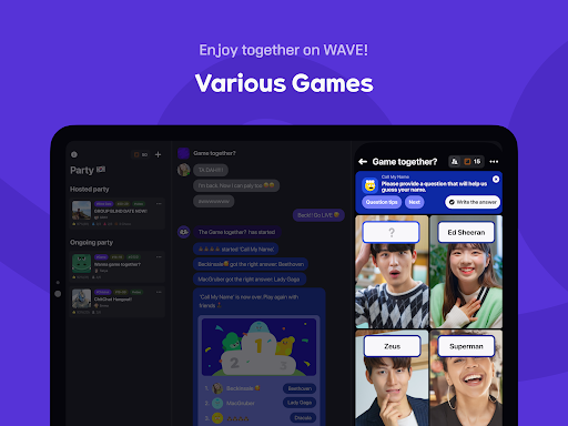 - You can play all the games provided on WAVE, such as Call My Name, Escape Room and more.