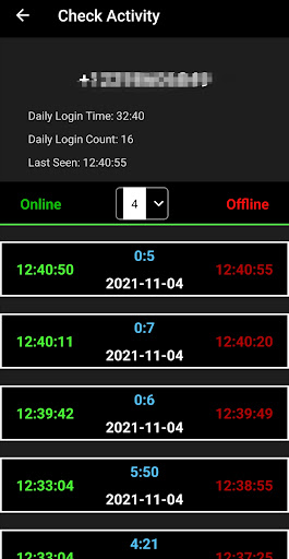 First, click the New button on the home page. Enter the desired information for the person to be followed. After a few minutes, your number is registered in our system and tracking is started. You will receive instant notifications if the followed person is online or offline on WhatsApp.