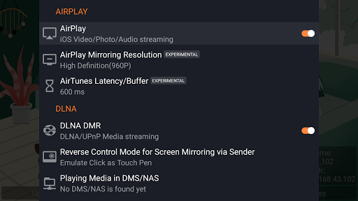 ●Install AirPinCast(Search 'AirPinCast' in Google Play) to share screen/media from Android devices