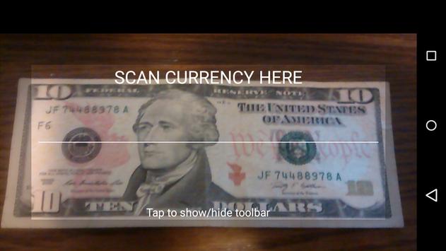 Point your camera at the currency you wish to recognize.