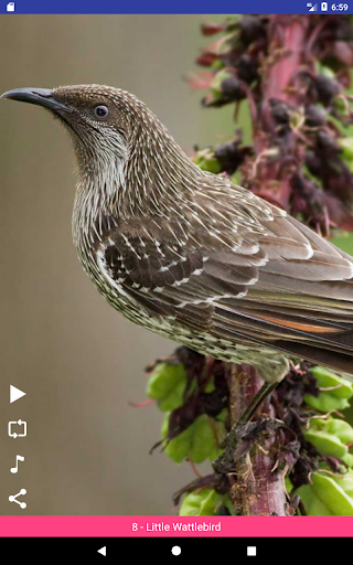 - Bird sounds are recorded by Fred Van Gessel and are licensed by www.birdlife.org.au