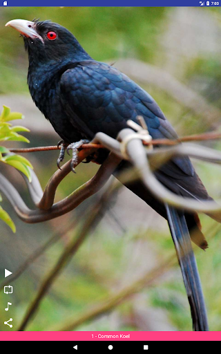 Bird Sounds is an amazing collection of beautiful 40 real-life, natural bird sounds recorded in high quality along with HD pictures of the birds. So play your favorite bird sound in a loop, close your eyes and console your soul.