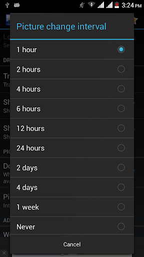 This application has a unique set of Cloud live Wallpapers. It allows you to change your wallpaper by double clicking on the picture and you can also set the image changing time from the setting. By click and hold on the wallpaper you will be back to your general selection.