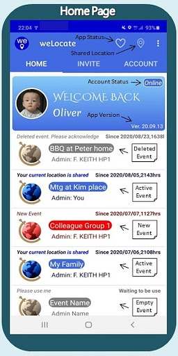 We developed weLocate to allow users to share their most recent locations with their family members, friends and colleagues. There are 20 events available for users to utilize and users can selectively set their locations to be shared or not for each event.