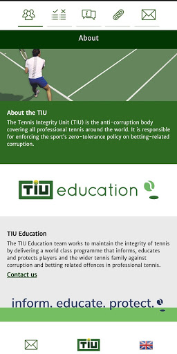 The Tennis Integrity Unit (TIU) app is an interactive mobile resource designed to provide you with up-to-date guidance and information on the Tennis Anti-Corruption Program (TACP).