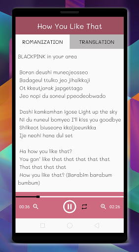 This application is very easy to use. You can play many Blackpink songs with lyrics. Play every Blackpink 블랙핑크 Albums and Singles, complete with Romanization and English translation. The best Korean music of the year.