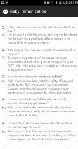This app has 4 menu: schedule, info, Question & Answer, and About. Please let me know if you have suggestion for this app. It is designed based on Indonesian government Immunization's program.