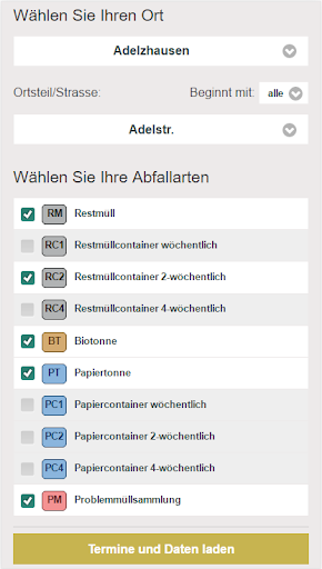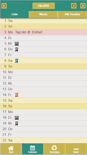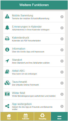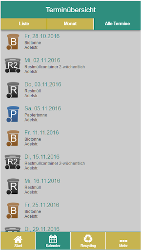 * Consulta de ubicación para encontrar aún más fácil encontrar el próximo punto de recolección.Con la función de memoria, transfiera las citas para vaciar a su propio calendario.