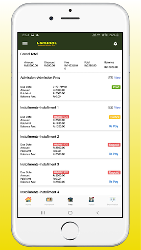 5. Fees : Track fees schedule, fee paid, upcoming installments and pending installments for all the fee to be paid !