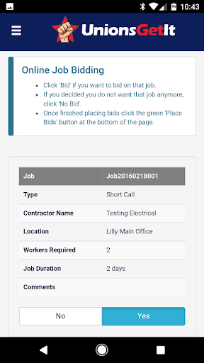 Bid on jobs. No more calling the job line. If there are jobs available, you can bid on them directly from the app.