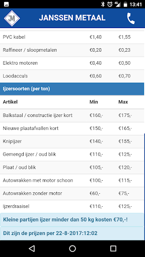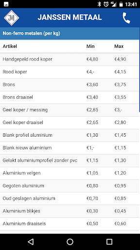 In deze app kunt u de actuele prijzen van metalen zien.