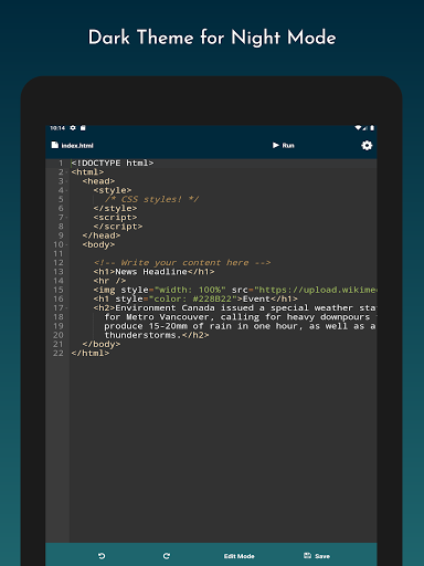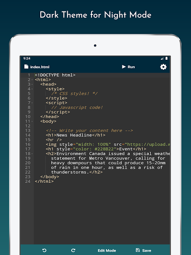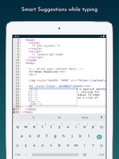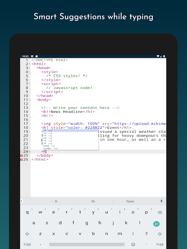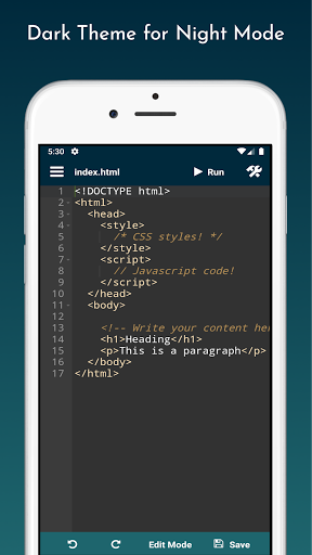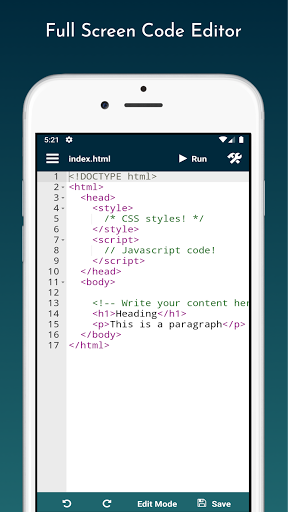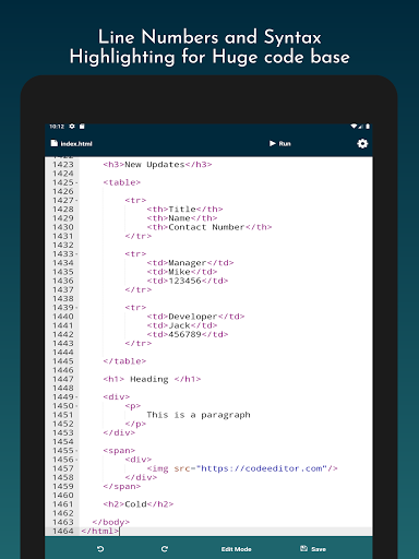 Our app is developed with various functionality to make it easy for the developers, students or anyone who wants to develop webpages. Web Editor is committed to provide you with these valuable functionalities: