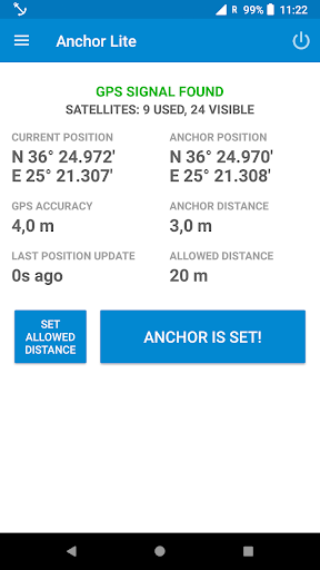 Please know that the performance and accuracy of the Anchor watch application depend on the hardware and software of the used device. If you have bad reception, please move the device to a location that has better satellite reception!