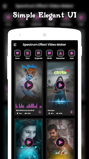 You can Download Unique Video status for Love, Birthday, God, Festival and Greetings with Beat wise porticle effects with your Favorite song track.