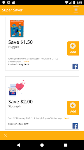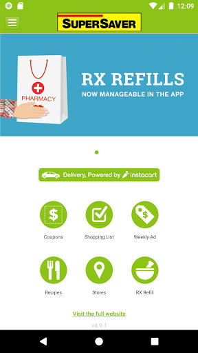Super Saver features include interactive weekly ads, recipes, shopping lists, store mapping and information, digital coupons, and pharmacy.