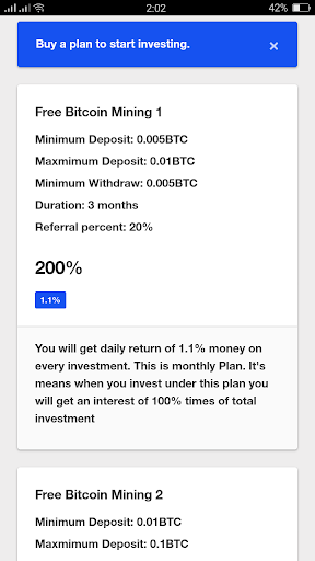 Signup now and receive 1 BTC free that you can use to purchase any bitcoin mining plan. No need to deposit your bitcoins.