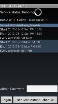 : Remote app helps you to allow instant Wi-Fi access without having admin logon and making changes on the Wi-Fi schedule on your kid's device. It is designed for the situation when you or your kid is outside but your kid needs to have instant Wi-Fi access which is currently not allowed by Wi-Fi Locker for Kids basic policy and exception schedule.