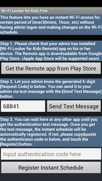 : With the Remote app, you can generate an "Authentication Code" and send it to your kid directly via text message. Then an instant Wi-Fi access schedule will be automatically registered on your kid's Wi-Fi Locker for Kids application.