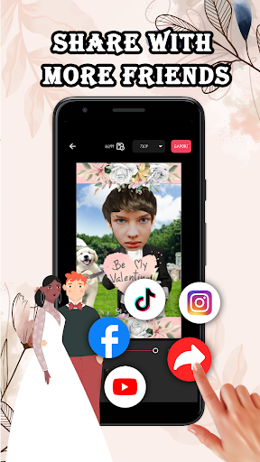 ๐Ÿ’“ Face swap & reface: funny wedding video maker provides amazing features for all interesting people. Save the created video on the device SD card. Share the video in all social media portals available on the user's device.