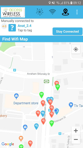 Access Wireless Free Wifi Finder automatically connects to free wifi hotspots in your town or wherever you may be.