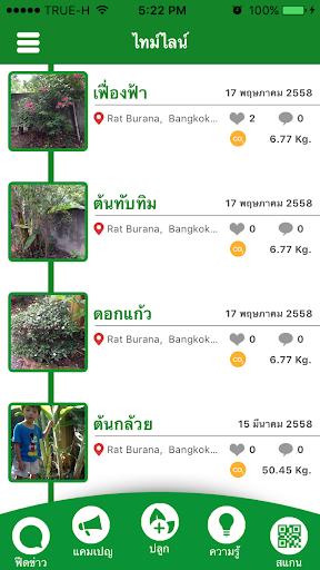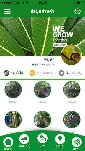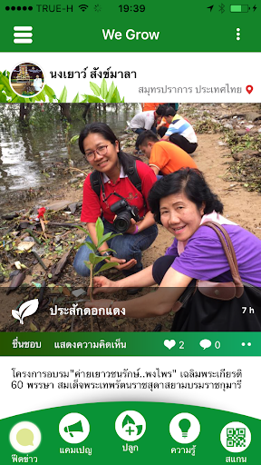 Charoen Pokphand Group dan True Corporation bersama dengan Kementerian Pertanian dan Koperasi Yayasan Projek Diraja, Jabatan Hutan Diraja, Jabatan Taman Negara, Hidupan Liar dan Pemuliharaan Tumbuhan Jabatan Sumber Laut dan Pantai Organisasi Pengurusan Gas Rumah Kaca Dan Yayasan Taman Queen Sirikit Bergabung dengan semua sektor untuk memacu projek "Tanam ... untuk Kita Berkembang Bersama", yang diciptakan sebagai mekanisme untuk mendukung penanaman pohon dalam masyarakat moden. Untuk menanam dan kemudian berkongsi maklumat melalui aplikasi. Ikuti perkembangan dengan berterusan. Tukar maklumat, pautan, rangkaian sosial, penanam pokok Serta koleksi pengetahuan terbesar mengenai pokok