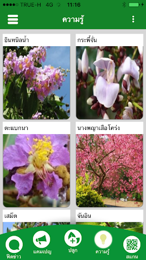 5. Pengetahuan (Pengetahuan) memaparkan maklumat mengenai pokok. Mereka yang berminat dapat mempelajari cara menanam, memelihara dan memberi manfaat kepada setiap jenis pokok. Boleh mencari Atau pilih untuk melihat data pokok mengikut kategori