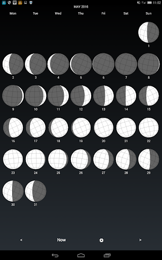 - clearly visible moon phase (monthly, daily and currently)