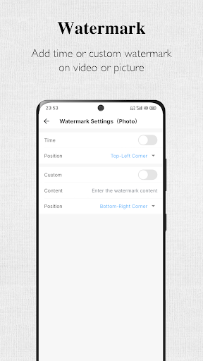 ★ Support time or custom text watermark function. Add watermarks when recording, such as time text and custom text.