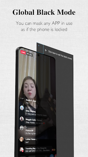 ★ You can overlay a global black view on top of any other application (such as live app or video chat) to simulate the phone is locked.