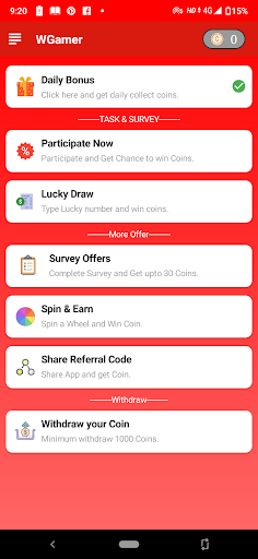 1. Collect coins by Uses Daily Bonus, Lucky Lifafa, Survey, Spin And Earn