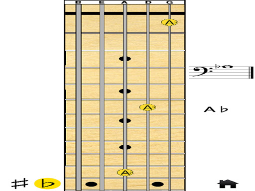 The 5 String Bass Note Legend App provides you with the name and music staff location of each note on the bass guitar's fretboard up to the 12th fret.