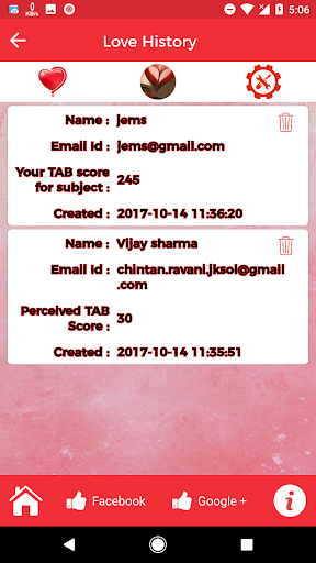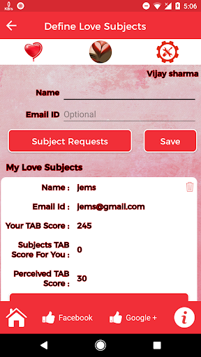 Integrated with TAB – Love & Hate calculator