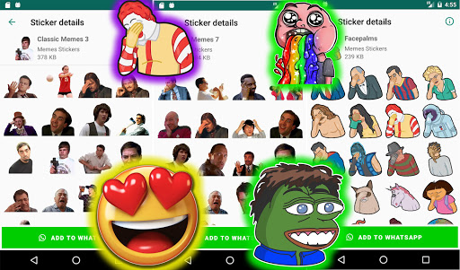 The best funny meme stickers pack for WAStickerApp. Includes more than 100000 new stickers. Finally the classic memes have arrived to WAStickerApp. Enjoy these cute stickers packs and share them with all your friends.