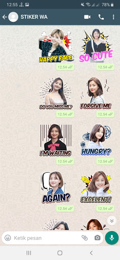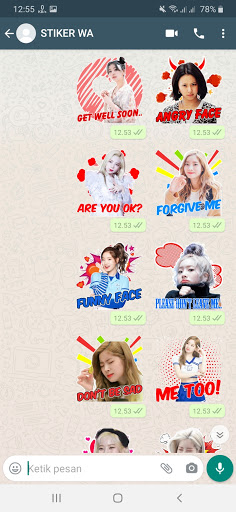 Download this from Chat Sticker WA Twice Korean Girl Group WAStickerApps free download, you can send and share WhatsApp Sticker messages to friends and family, there is no cost to send WhatsApp Sticker messages locally or internationally, so you don't have to pay for every WhatsApp sticker message sent. Chat with your friends and family all over the world.