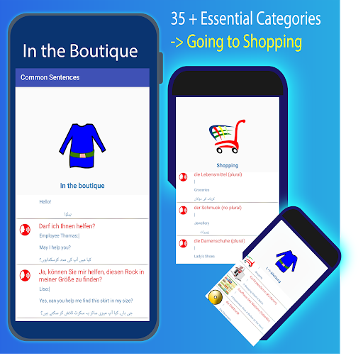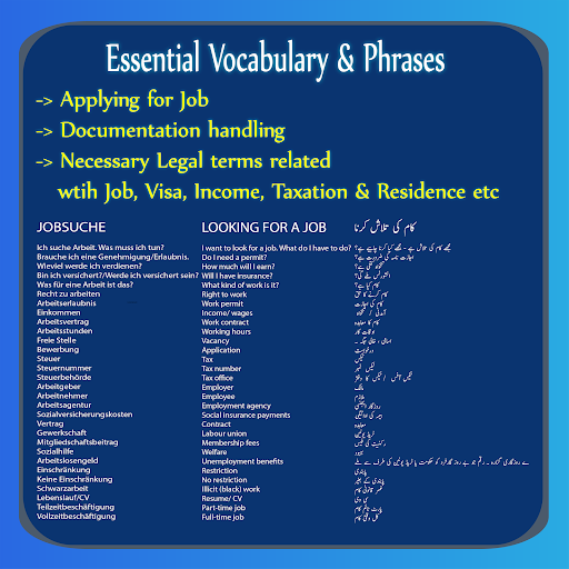 learning German in urdu offline, german phrases, german vocabulary, speaking German, speak german offline, speak german in urdu and learn urdu german app.