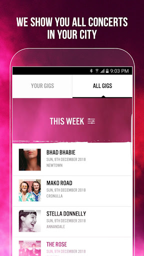 2. The app shows you every single gig happening in your city, which you can filter by date and exact location. So you always know whats on.