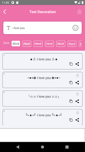 Allows you to create incredible text effects, easily and quickly, and share it with your favorite chat app: Twitter, WhatsApp, Line, Talk, WeChat, ChatON, Telegram, or any other chat application.