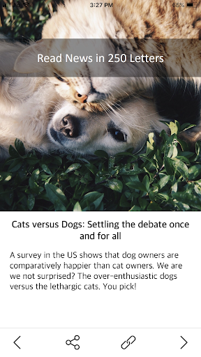Share the news story card with your friends on social media quickly. Each card will have a high quality picture card with the news, including a relevant image.