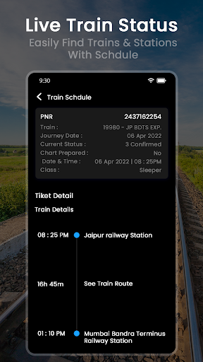 Live Train Status, Train Status Ticket Book PNR, Indian Railway & IRCTC Info app is the best app for your Indian Railway and IRCTC inquiry needs with fast IRCTC PNR Status. You can check train tickets and get live Train Information.