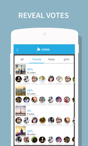Share your question on Whichit, your social networks, or privately with your friends and family to get an answer. Your friends vote on your question, and you get immediate results to help you decide.